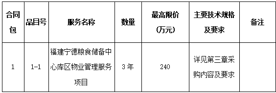 2.服务内容:福建宁德粮食储备中心库区物业管理服务项目,具体详见第三章招标内容及要求。
