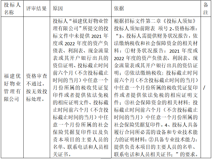 4、资格审查不合格或被确定为无效标、否决投标的投标人名称、原因及依据