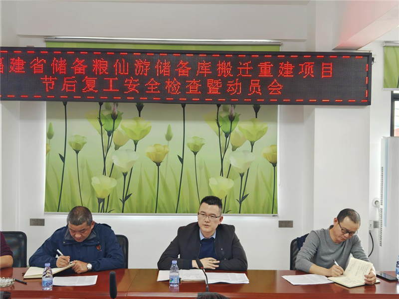 2月19日,仙游直属库筹建处召开2024年春节复工安全检查暨动员会,动员全员迅速收心归位,振奋精神鼓足干劲,统筹做好项目安全生产任务,确保起步稳、开门红。省粮储局挂职干部、仙游县政府党组成员出席会议并讲话。