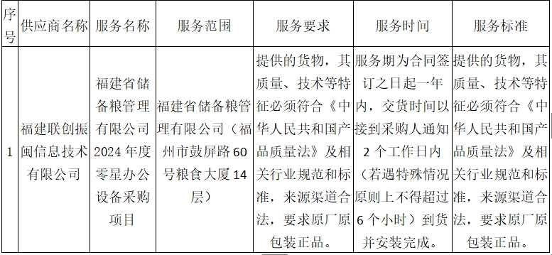 二、项目名称:福建省储备粮管理有限公司2024年度零星办公设备采购项目