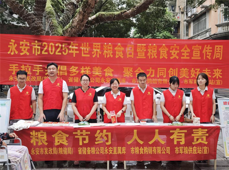 为深入贯彻落实习近平总书记关于保障国家粮食安全的重要论述和重要指示批示精神,10月16日上午,永安直属库与永安市发改局(市粮储局)、永安市粮食购销公司、永安市军粮供应站等单位在燕江楼广场开展了2025年世界粮食日暨粮食安全宣传周活动。