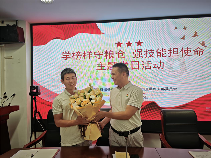 会议开篇由直属库党支部代表介绍连学进科长的先进事迹,重点讲述其在仓储管理岗位上的日常工作表现,如对待粮食仓储工作的严谨态度、为提升仓储技术刻苦钻研的经历,以及在第七届国赛中克服困难、奋勇拼搏取得三等奖的过程,让参会人员深入了解榜样的示范性。