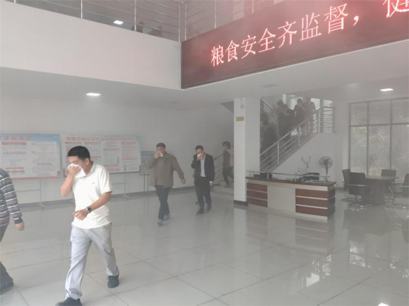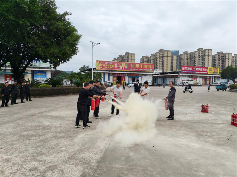 下午,在市场管理处会议室集体观看安全警示教育片,敲响安全警钟。会后联合开展消防逃生演练,全体人员用湿巾捂住口鼻,迅速有序按照预制逃生路线疏散撤离,并前往消防灭火演练场地集合。随后,在认真听取了消防安全员讲解后,开展了灭火器实操演练。大家积极踊跃,牢记“提、拔、握、压”的操作要领,手持灭火器站在上风方向对准火焰根部喷射,成功扑灭了模拟火源。