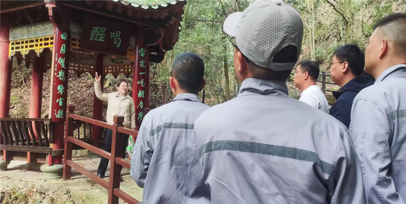 在教育基地,党员们沿着蜿蜒步道前行,跟随讲解员溯溪而上,全体党员依次来到“仰止”“喝醒”“风斯在下”三座古意亭台,每到一处,大家都认真聆听点位背后的廉洁典故,细细品味楹联中蕴含的廉洁深意,深刻体悟“源清则流清,心正则事正”的文化内涵,进一步强化廉洁意识和实干精神。