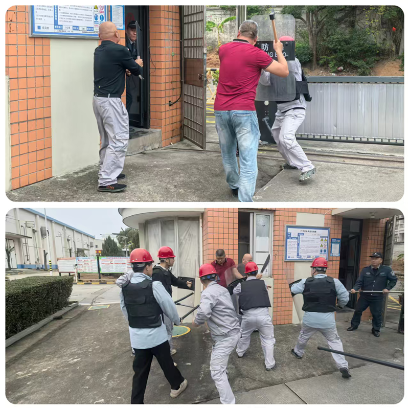 此次综合演练共开展了3场次应急演练。一是消防应急演练。模拟某仓房外围突发初起火灾,监控室发现火情警报,报告总指挥后立即启动消防应急预案。义务消防队迅速赶赴现场,操作灭火器扑灭火源。同时,疏散引导组立即组织办公区、作业区人员沿预定路线,低姿捂口鼻,快速有序撤离至安全集结区。整个流程紧张有序,充分检验了员工扑救初起火灾和组织疏散逃生的实战能力。二是有限空间作业安全演练。模拟进仓作业前安全检查环节,作业人员严格按照“先通风、再检测、后作业”原则,演示了气体检测、安全防护装备佩戴等全过程。重点模拟了作业人员突发不适仓内晕倒的应急救援,提升了员工对有限空间作业风险的认识和应对能力。三是反恐防暴演练。在库区大门外,模拟“不法分子”企图强闯库区重点区域,安保人员立即拉响警报器,同时运用防暴器械进行先期周旋与控制,应急救援队迅速支援,合力将“不法分子”制服并带离,有效检验了库区安防体系响应与处置能力。