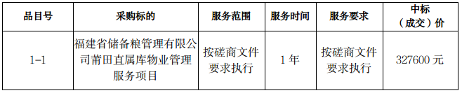 采购项目名称:福建省储备粮管理有限公司莆田直属库物业管理服务项目