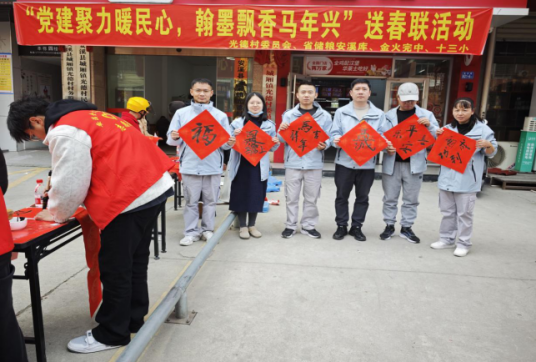 为深入学习贯彻习近平新时代中国特色社会主义思想,扎实推进“我为群众办实事”实践活动,弘扬中华优秀传统文化,营造欢乐祥和、喜庆热烈的丙午马年新春氛围,2月10日上午,安溪直属库党支部联合光德村委员会、安溪县金火完全中学、安溪县第十三小学开展“党建聚力暖民心,翰墨飘香马年兴”迎新春主题党日活动。