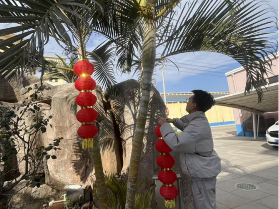 活动现场,全体干部职工热情高涨、分工协作、默契配合。大家在库区主干道两侧悬挂红灯笼,让喜庆的中国红点缀冬日库区;在办公楼、宿舍楼门厅张贴寓意吉祥的春联与“福”字,翰墨飘香、年味十足;在办公楼入口悬挂大红灯笼,处处洋溢着热烈浓郁的节日气息;在广场两侧精心摆放鲜花绿植,进一步美化库区环境,增添雅致与温馨。