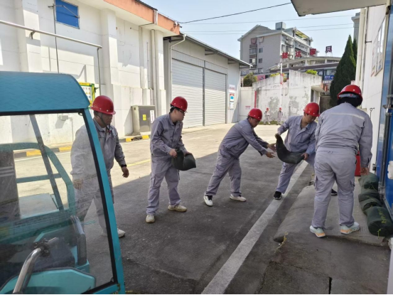 随着总指挥下达演练开始指令,各应急小组迅速进入实战状态,分工明确、配合默契。抢险组快速装填、搬运沙袋,在仓房门口、低洼地段、围墙边缘等关键部位分层压实构筑防汛挡水墙,有效阻断雨水倒灌通道;设备组熟练架设抽水泵,连接水带、启动机器,对积水区域进行强力排水作业,模拟实操过程规范有序、高效顺畅,通过演练有效提升了全员防汛应急技能与协同作战能力,为粮库安全度汛、守护储粮安全打下坚实基础。